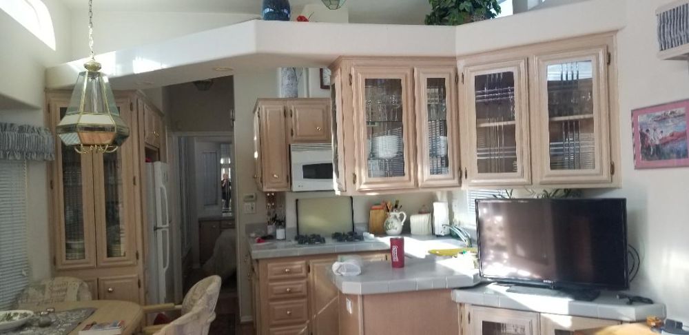 Nice park model, lots of light, open deck, good location mid park on west wall across from golf access, across from satellite pool and facilities, outdoor cooking, pull out sofa, bedroom Queen bed has new mattress, linens and towels included, new washer, garden with fruit trees: